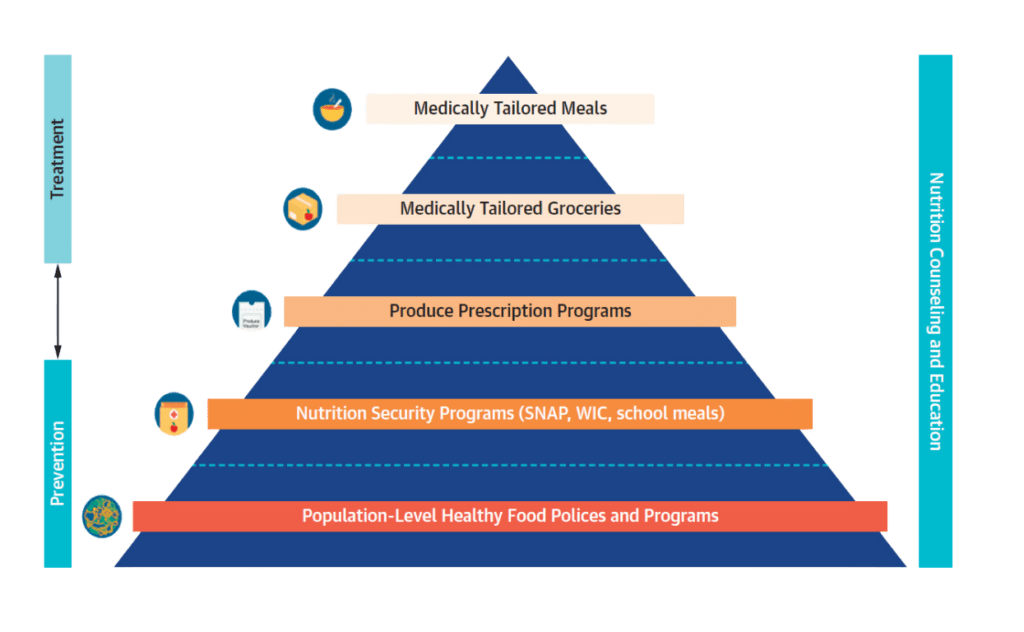 With the growing interest in Food is Medicine (FIM) interventions, there is an opportunity to strengthen connections between FIM and other food and nutrition assistance programs. We discuss how medically tailored meals (MTM), medically tailored groceries (MTG), and produce prescriptions (PRx), which are ideally healthcare-funded and USDA-funded federal nutrition benefits such as SNAP and WIC, are complementary interventions within the FIM spectrum for improving the diet and health of children and families.
